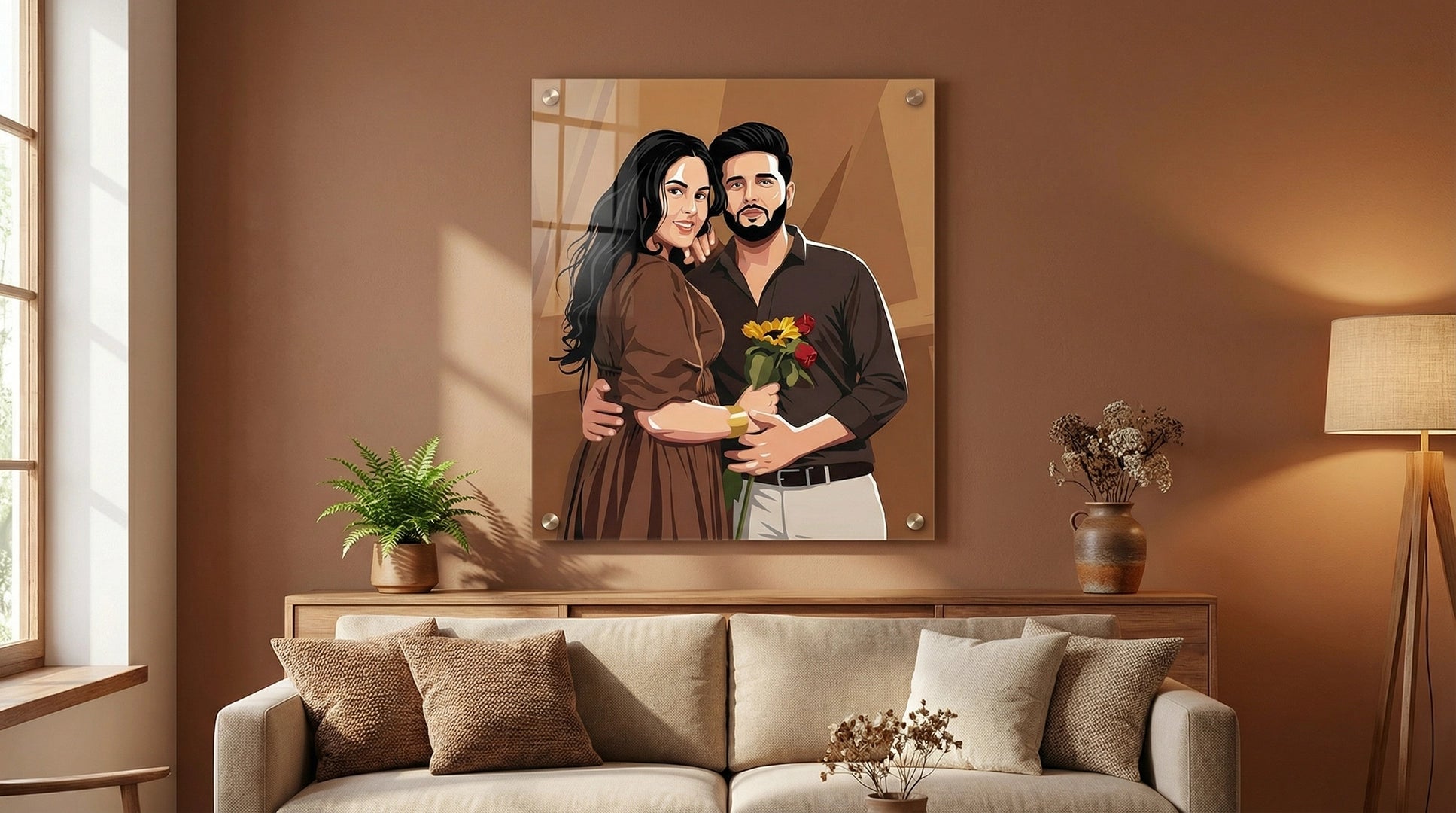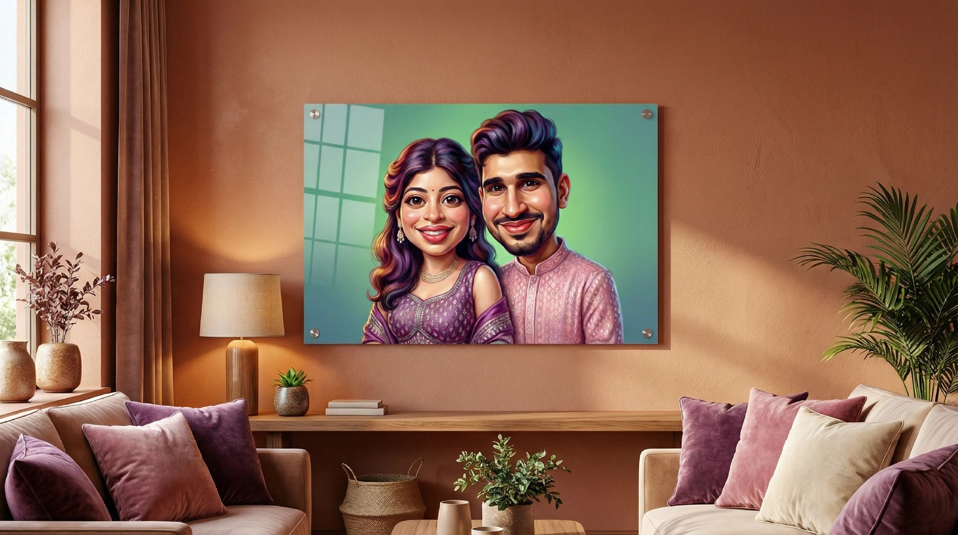 Semi Caricature Oil paint Portrait with Acrylic Photo frame Valentines Day Gift